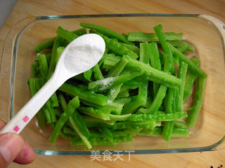 步骤16、把调匀的料汁倒在苦瓜条上拌匀即可。