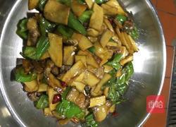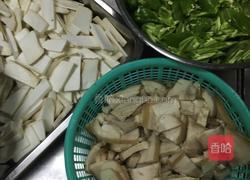 步骤1、杏鲍菇切片,熟肉切片,辣椒切至滚刀块。