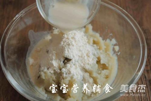 步骤9、9. 将红薯泥、面粉和奶粉搅拌均匀。