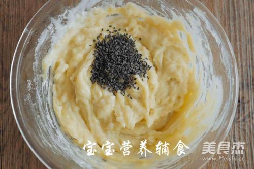 步骤11、11. 最后倒入黑芝麻。 PS: 如果用的是白芝麻,提前打成粉,补钙的效果会更好。我用的是黑芝麻,怕影响成品的颜色,所以就没有打粉。