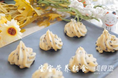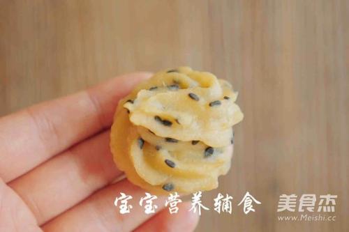 步骤19、 烤完之后软软香香的,非常好咀嚼!而且固定成型,很容易让宝宝拿在手上自己吃噢!