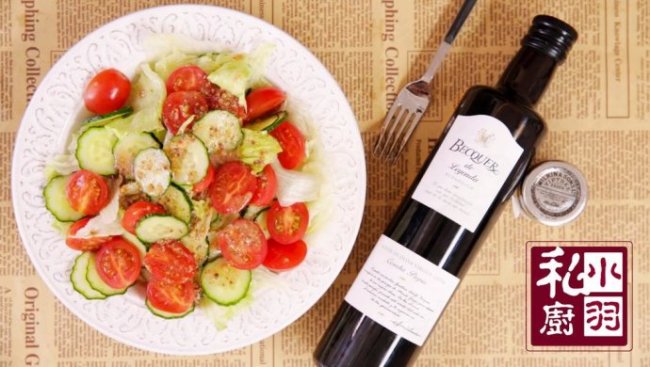 步骤3、 ▲1大勺约15克的橄榄油,2大勺约30克的红酒醋 ,油醋的比例大概1:2左右,这个比例可以根据自己的口味调整,喜欢酸的可以多放些醋。