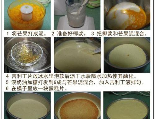 配方:海绵蛋糕,淡奶油,吉利丁片,芒果
