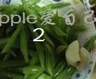 步骤2、扁豆斜着切丝,蒜头切碎