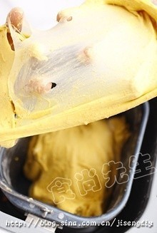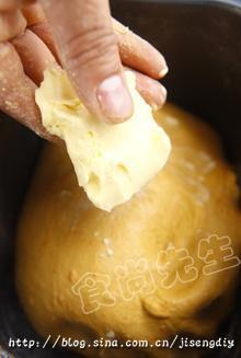步骤2、搅拌至面团光滑有弹性,加入黄油