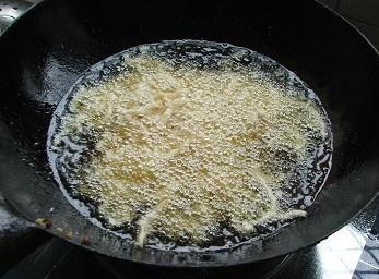 步骤4、葱姜炒出香味,放鱼肚、鸡丝、高汤、盐、料酒,用小火烧5分钟,放鸡精,用水淀粉勾芡