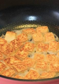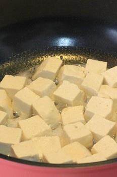 步骤7、锅里放入少许油,把豆腐放入锅里