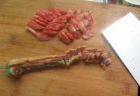 步骤2、腊肉腊肠切片后用少量黄酒腌制数分钟
