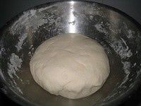 步骤1、用牛奶把酵母,白糖溶化;面粉倒入牛奶中搅匀;用手把面粉搓成光滑的面团,盖上保鲜膜