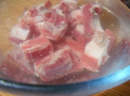 步骤4、加入淹没排骨的凉水,浸泡一小时。