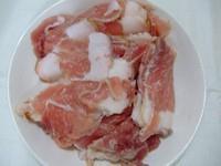 步骤1、猪肉切成厚薄均匀的薄片,切薄点比较好,这样更易熟,易入味,易咬。