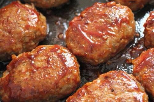步骤3、平底锅里放进少量的油,把肉饼轻轻地放进锅里、煎烤牛肉饼。肉饼底面煎烤到略焦,就可以翻一个面,再次进行煎烤。煎好的肉饼拿出来,平底锅里再放进料酒、番茄酱和酱油。(此时平锅里不要洗,并利用锅里剩下的肉汁做酱。)调料烧开后再放进煎好的肉饼,直到酱汁变浓。2-3块肉饼分开并在冰箱冷藏。改天早上做便当时用平锅再加热即可