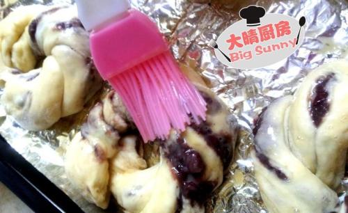步骤7、入烤箱前,用刷子在表面刷上一层薄薄的全蛋液,在让半成品在未开火的烤箱中醒15分钟。