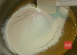 步骤4、泡打粉&低筋面粉一起过筛,改用刮刀混合均匀
