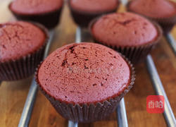 步骤3、把步骤1的所有粉料加入步骤2轻轻拌匀成面煳状再加上溶化的奶油拌匀,如果要做成红丝绒杯子蛋糕可在这步骤加上红色食用色膏