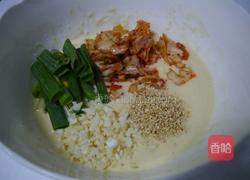 步骤1、把泡菜的汁挤干后切成粗丝、青葱切成2cm小段备用。