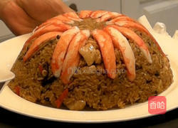 步骤8、再闷2分钟后,起锅前加一点白胡椒粉,然后就起锅放在刚准备好的大碗公内,把饭压平后倒扣到到盘子里,加上香菜、辣椒丝摆盘,就完成啰!