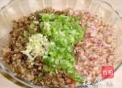 步骤3、肉馅里加入大葱末、酱油、盐、白糖、少许五香粉,沿着同一个方向搅打肉馅,直到肉馅开始上劲,变得粘稠即可。