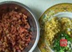 步骤3、然后将糯米控水,放入垫有纱布的蒸锅中。大火蒸熟。同时腊肠放入锅中煮熟。