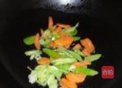步骤7、锅中放入少许玉米油,油热后加入葱花、胡萝卜、尖椒炒香