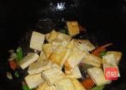 步骤9、然后放入少许味达美调味,再把煎好的豆腐的放入锅中翻炒