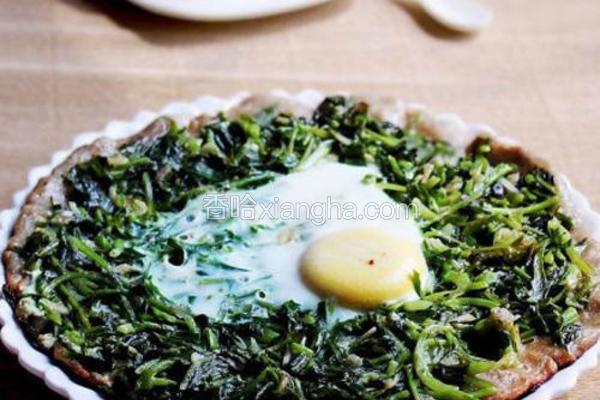 步骤7、最后打入鸡蛋,在锅内都放好以后再开火,盖上盖子,小火烙制,烙好的饼底部有些焦黄。