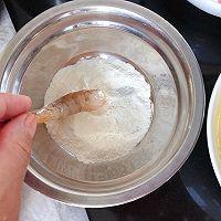 步骤7、 将虾肉粘上干面粉