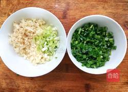 步骤2、把蒜头拍碎去皮切得蒜蓉,姜切碎,葱花切细段,青葱叶另外放一个碗里