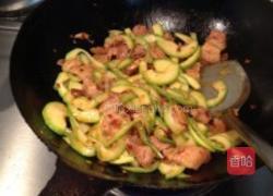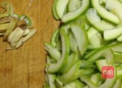 步骤4、加角瓜,翻炒,最后加一点点盐