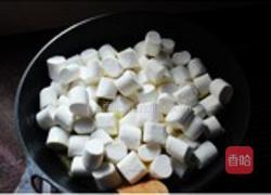 步骤2、倒入棉花糖,继续小火加热至融化;
