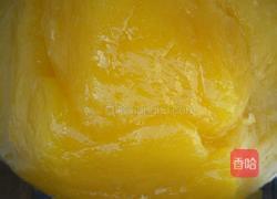 步骤4、蛋黄和糖粉混合好了,呈粘稠状态,就可以加玉米油了。记住,玉米油是一勺一勺加的,不能一次加太多。每加一次玉米油,都要和蛋黄充分融合,才能进行下一次的加玉米油。