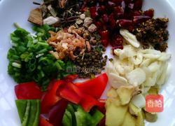 步骤6、图1除了青红椒,小葱,其它调料都放锅里炒香,
