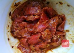 步骤4、猪瘦肉,用淀粉,盐,花椒粉,少许生抽,姜米,鸡精,少许豆瓣酱码好味,备用,