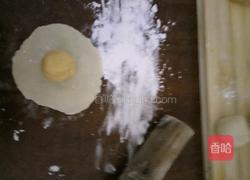 步骤11、注意切口向下,用手壓扁擀開包入一份餡料。