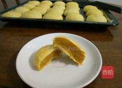 步骤1、準備好用材:南瓜切片蒸熟用勺子壓成泥,(留55g做酥皮)餡料:在310g南瓜泥加入40g黃油+60g糖+鹽揉成麵團。