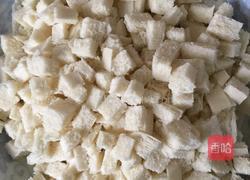 步骤5、另起锅,到油,稍微多些,油不用很热,倒入馒头丁翻炒,大多数馒头丁成金黄色时盛出