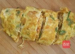 步骤6、第一个好了后沿一方卷起,放边上 再倒入适量油 煎第二份 将第一份沿着第二份再卷起 依次类推 三份结束