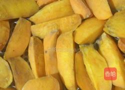 步骤11、把腌制好的红薯用筷子夹出来,然后把粘有糖粒的红薯放在糖水里淘掉糖粒,吃起来没有沙沙感。再等30分钟铺到烘干机上,也可以不等,等是为了让红薯身上的糖水滴的干一点。