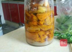 步骤10、冬天腌制2天,夏天腌制1天,两个都最好放在保鲜隔保鲜腌制,没有条件的有糖也不容易坏,追求完美的就进保鲜隔吧。1天后,我没等2天就开始烘了,因为没进保鲜隔,瓶子大了,婆婆妈在,没敢拆保鲜隔板。如果腌制2天,第二天就要开始摇晃一下瓶子,不是使劲上下摇晃,是轻轻的斜晃,把上面没有糖水的红薯粘一下糖水,这样不容易变坏。