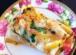 步骤6、趁着鸡蛋液没有完全干,撒上葱花和芝麻;喜欢吃香菜的可以撒些香菜末。