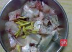 步骤3、鱼腩用盐,糖,鸡粉,味之素,生粉,油,姜,拌腌待用