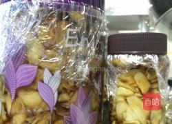 步骤8、将晒好的生姜放入瓶子里,然后将凉透了的糖醋液倒入瓶中,要将生姜全部没过,这样不容易坏。最后用保鲜膜封住瓶口,盖上盖子,放两三天就可以吃了!