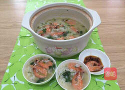 步骤7、准备调味菜和虾,粥也差不多熟了