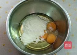 步骤4、蛋黄加入酸奶、花生油、盐,用手动打蛋器打至蛋黄跟油完全融合。