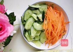 步骤6、腌制好的紫甘蓝挤掉多余的水分,将切好的胡萝卜黄瓜倒一起,倒入调好倒入料汁搅拌均匀