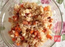 步骤2、胡萝卜和火腿切丁备用,一会儿随米饭入锅炒