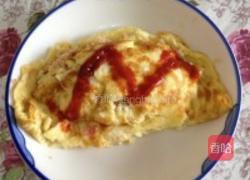 步骤8、将炒饭包入蛋皮,加番茄酱,即可食用