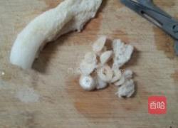 步骤5、把泡发好的竹荪去头尾——剁碎,兑入上一次做的(竹荪包豆腐馅料馅中的)豆腐馅中。