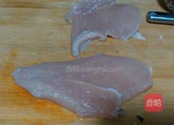 步骤15、盘子底下垫上生菜丝将鸡肉条摆上