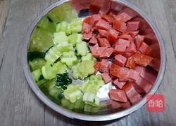 步骤6、把烤肠和黄瓜放入锅中翻炒一会!